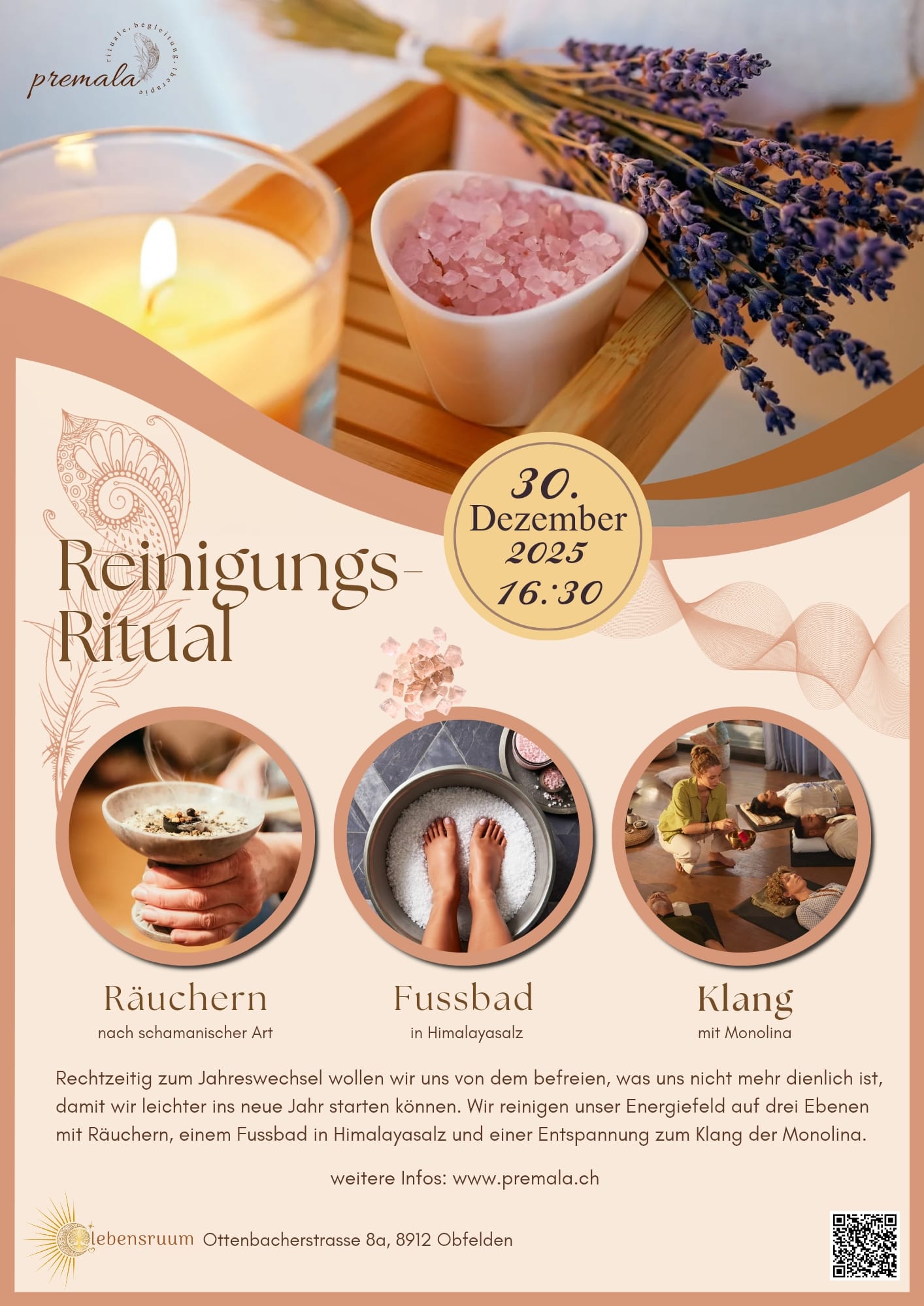 Ein Reinigungsritual mit Gabriela und Charlotte zum Jahresabschluss mit Räuchern nach schamanischer Art, einem Fussbad mit Himalayasalz und einem Monolina Klangbad.
